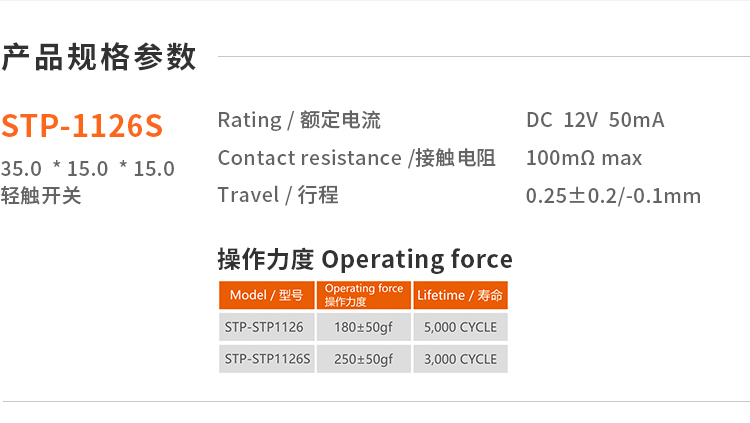 3. Operating Force : 180±50gf