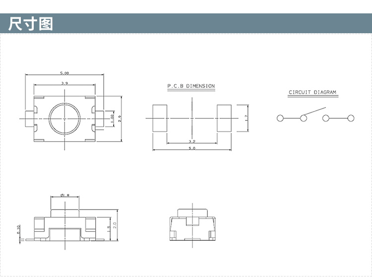 STP-1185两脚正按贴片无定位柱3*4*2.0小龟轻触开关