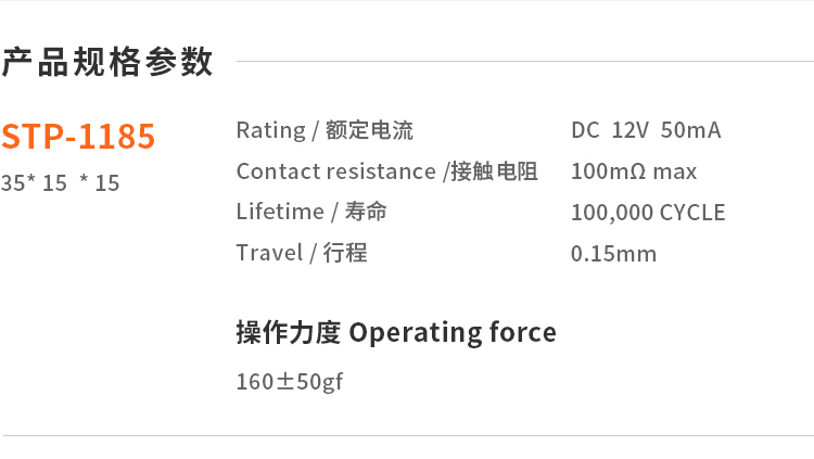 3. Operating Force : 180±50gf