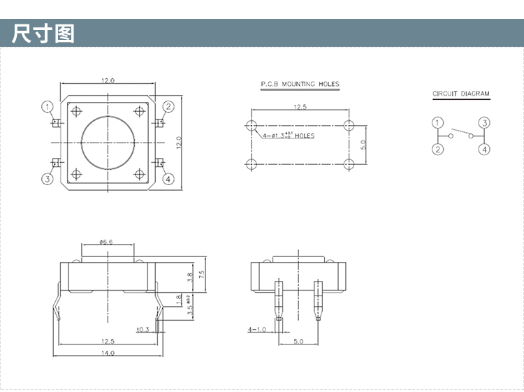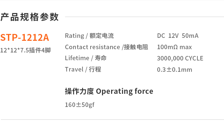 STP-1212A四脚DIP插件12*12*7.5轻触开关