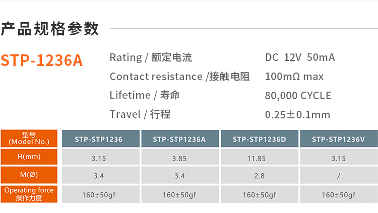 3. Operating Force : 160±50gf