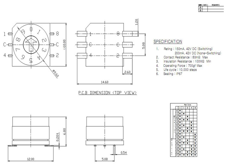 用户将转轴手柄旋转至所需端位, 可体现BCD Code化的输出值。主要用于自动化 设备、控制设备、家用电器、安全设备、音响器 具等大部分产业设备。