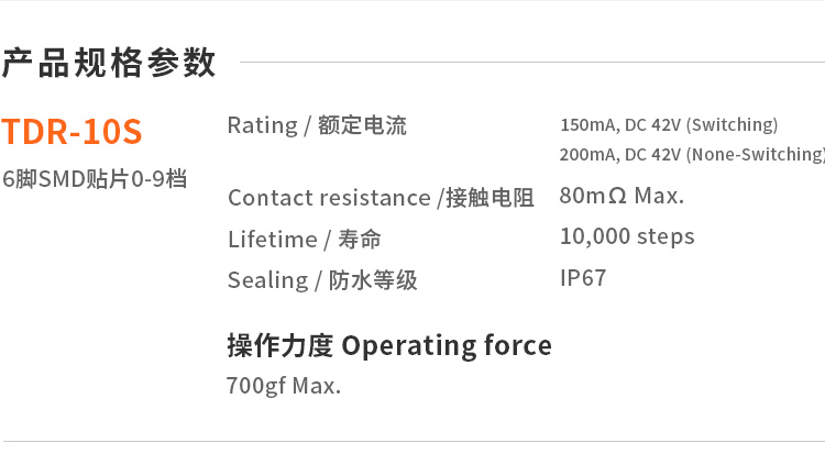 10*10防水立式SDM贴片10档TDR-10S旋转编码开关