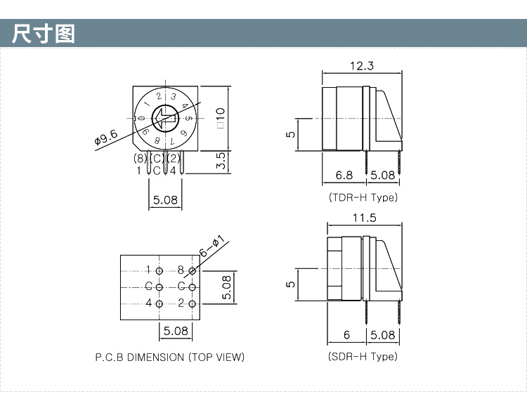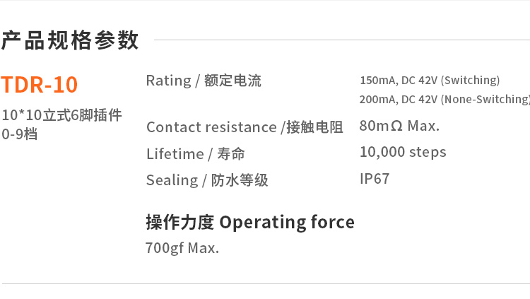 防水IP67级10档立式DIP插件TDR-10旋转编码开关