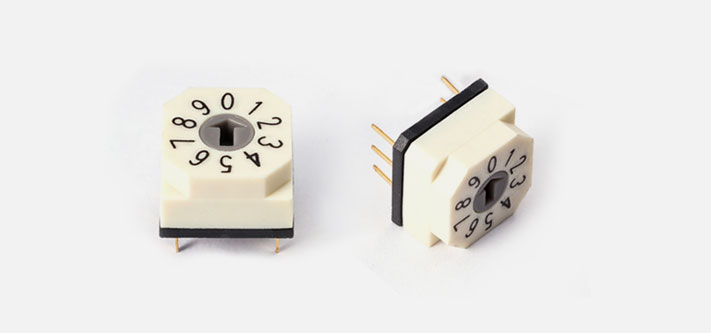 旋转开关,用户将转轴手柄旋转至所需端位, 可体现BCD Code化的输出值。主要用于自动化 设备、控制设备、家用电器、安全设备、音响器 具等大部分产业设备。
