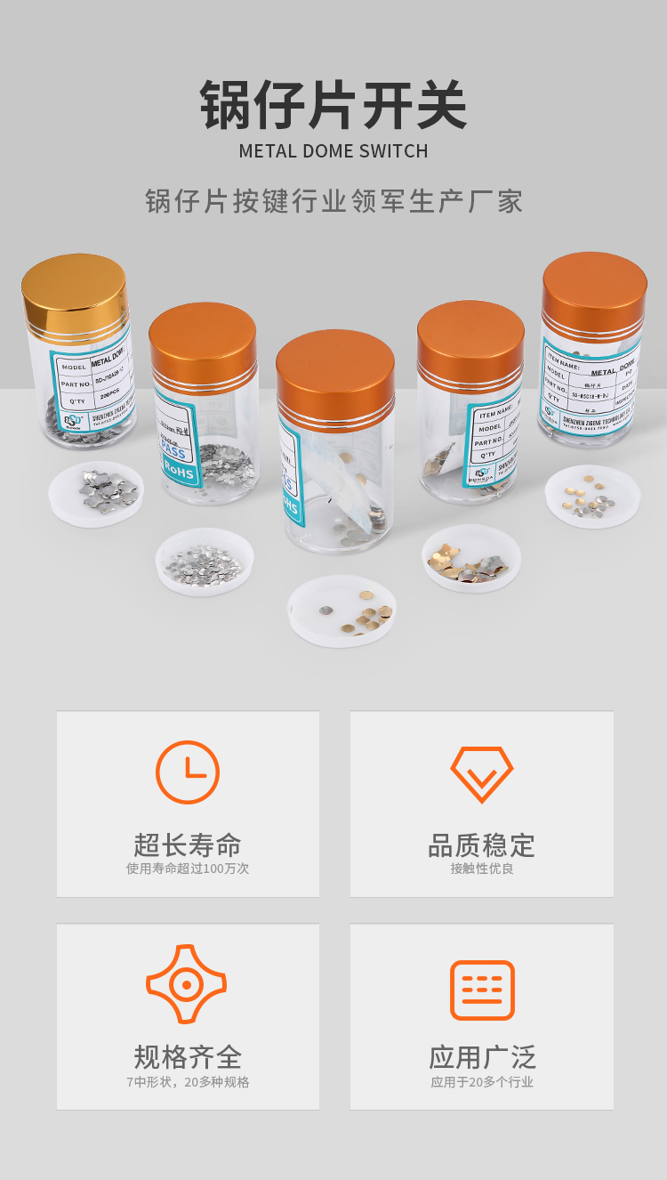 镀金dome片5mm圆形金属锅仔弹片