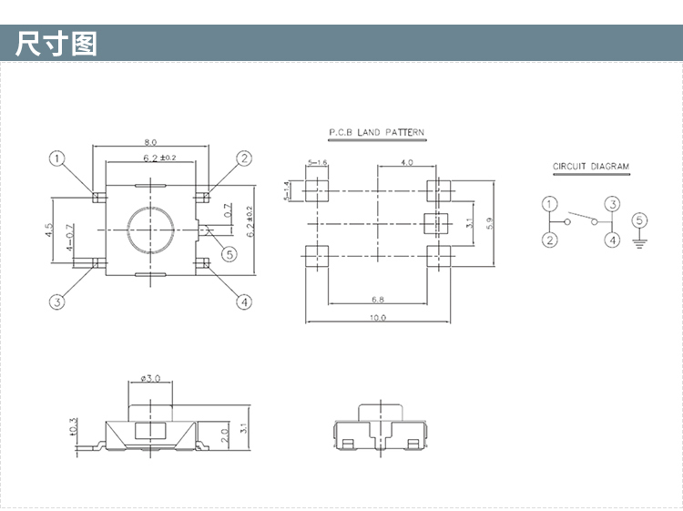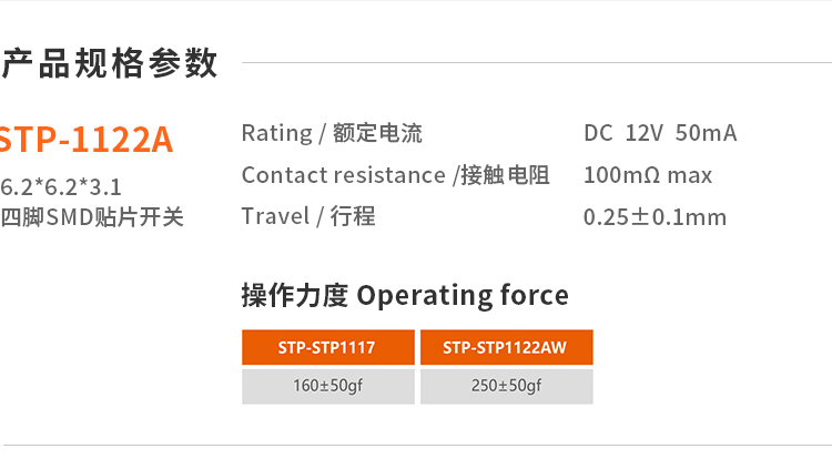 STP-1122A五脚贴片接地6.2*6.2*3.1轻触开关