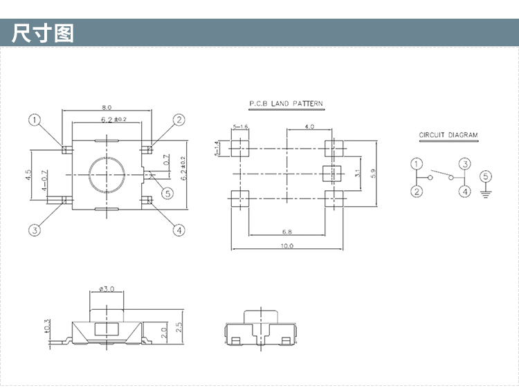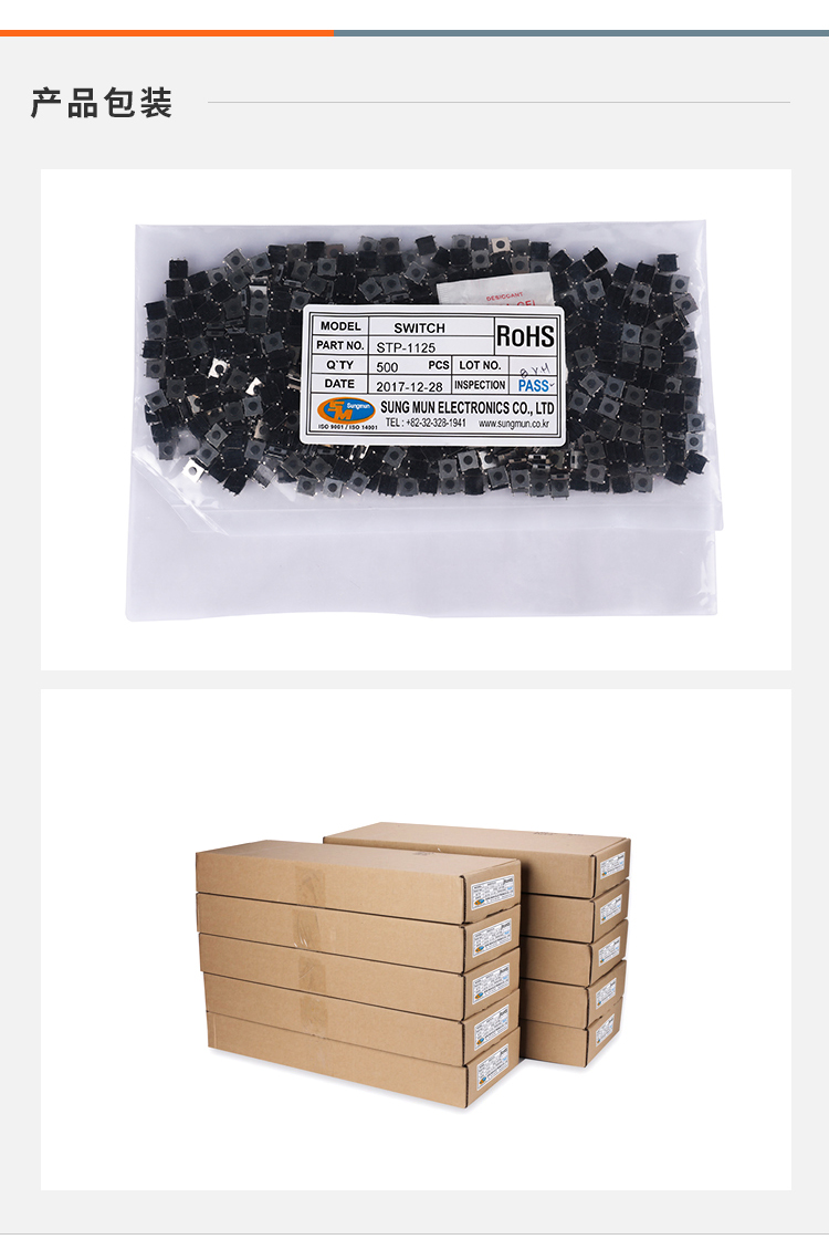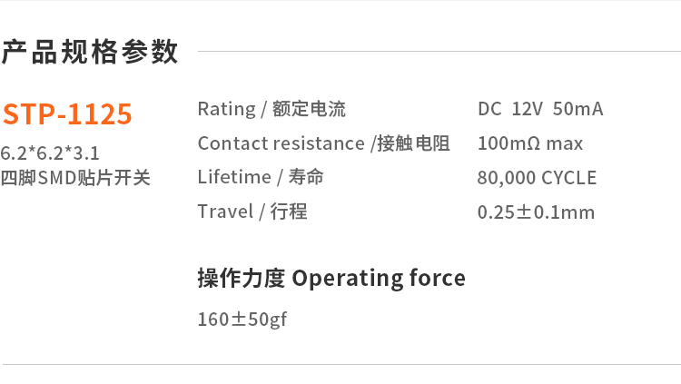 STP-1125五脚接地SMD贴片6.2*6.2*2.5轻触开关