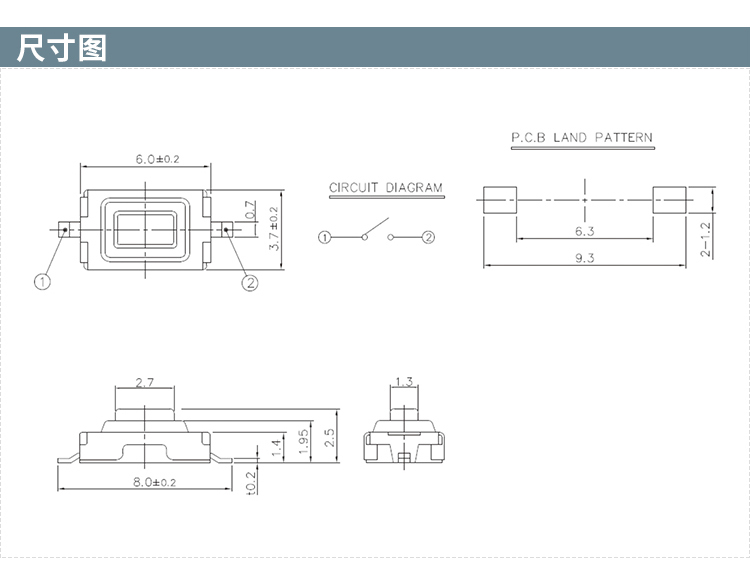 STP-1126两脚SMD贴片3*6*2.5轻触开关