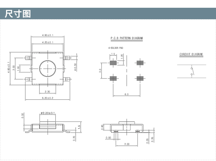 STP-1127C四脚SMD贴片4.5*4.5*1.5轻触开关