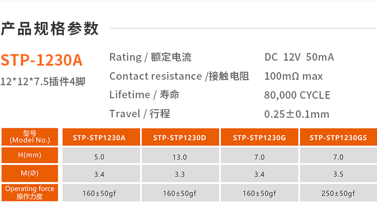 3. Operating Force : 180±50gf