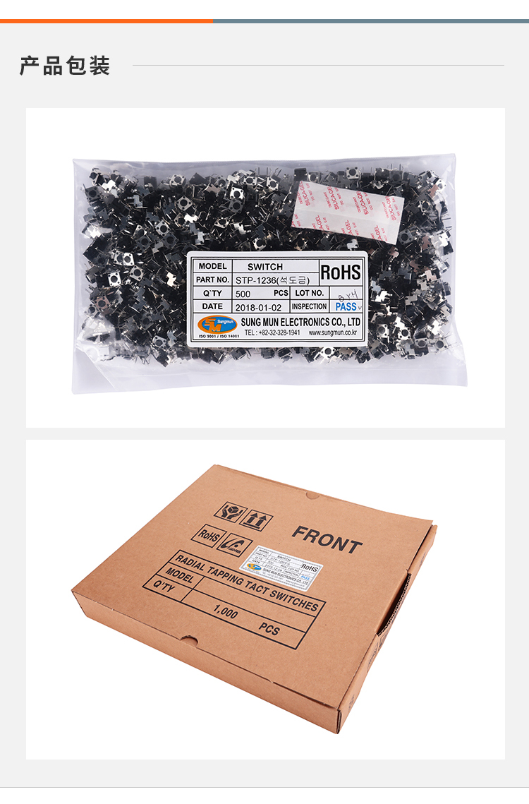 STP-1236A带支架两脚侧插6*6轻触开关