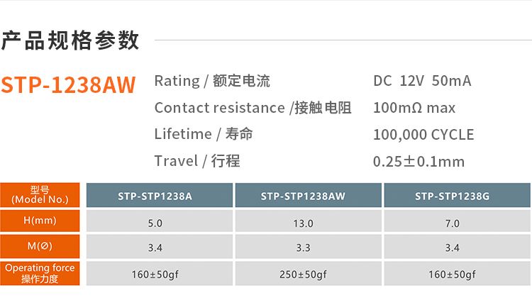 3. Operating Force : 250±50gf