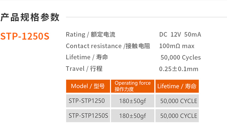 3. Operating Force : 180±50gf