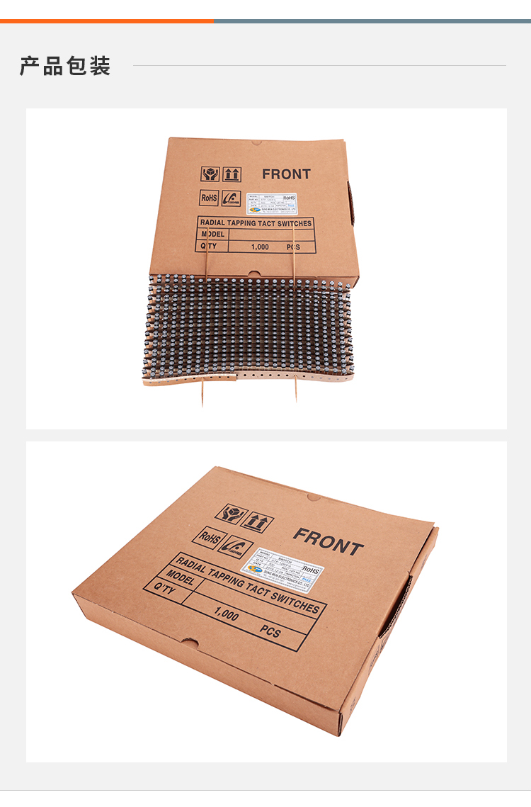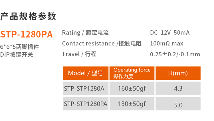 STP-1280PA 6*6*5两脚插件可编带卷装轻触开关