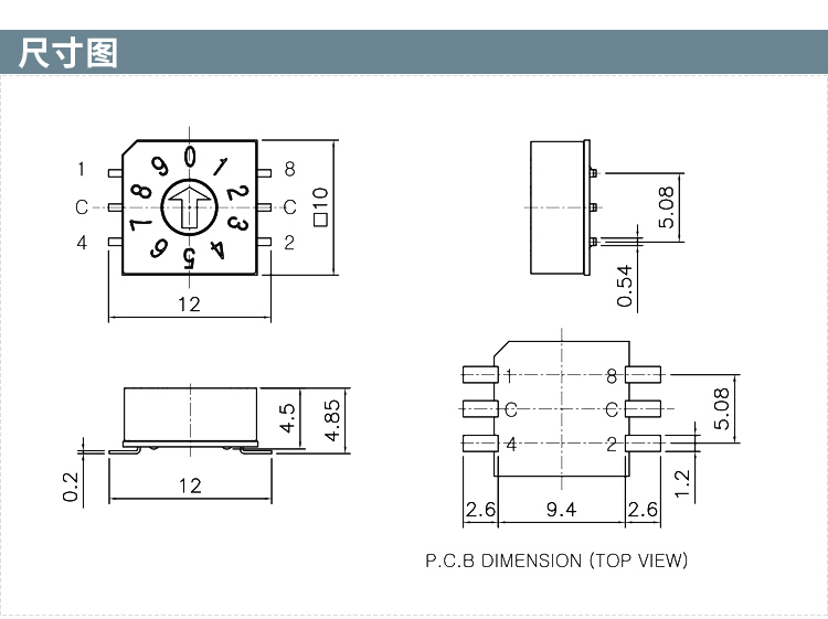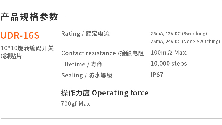 16档旋转编码UDR-16S贴片 0-16档旋转编码开关 10*10旋转编码开关
