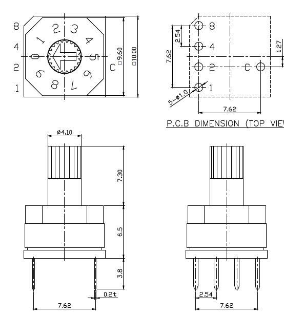 用户将转轴手柄旋转至所需端位, 可体现BCD Code化的输出值。主要用于自动化 设备、控制设备、家用电器、安全设备、音响器 具等大部分产业设备。